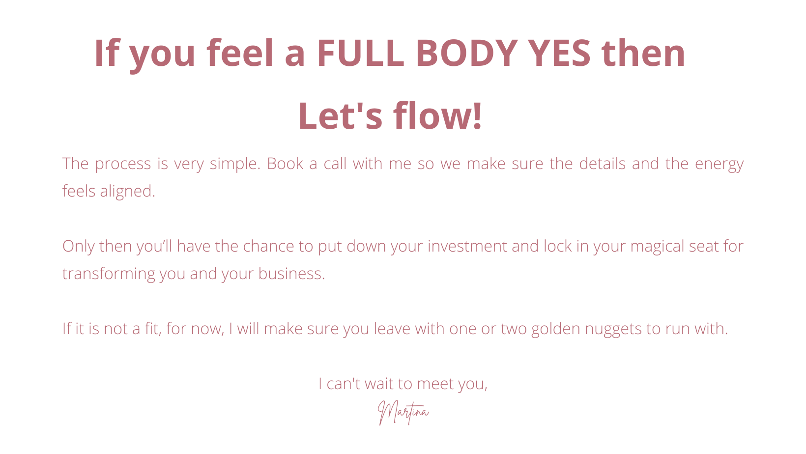 Today, Martina helps women to heal the impaired band between the mind (masculine) and the body (feminine). With this, women can become the Chief Intuition Office of their soul-led business and accelerate the growth by making bank with their unique gifts.