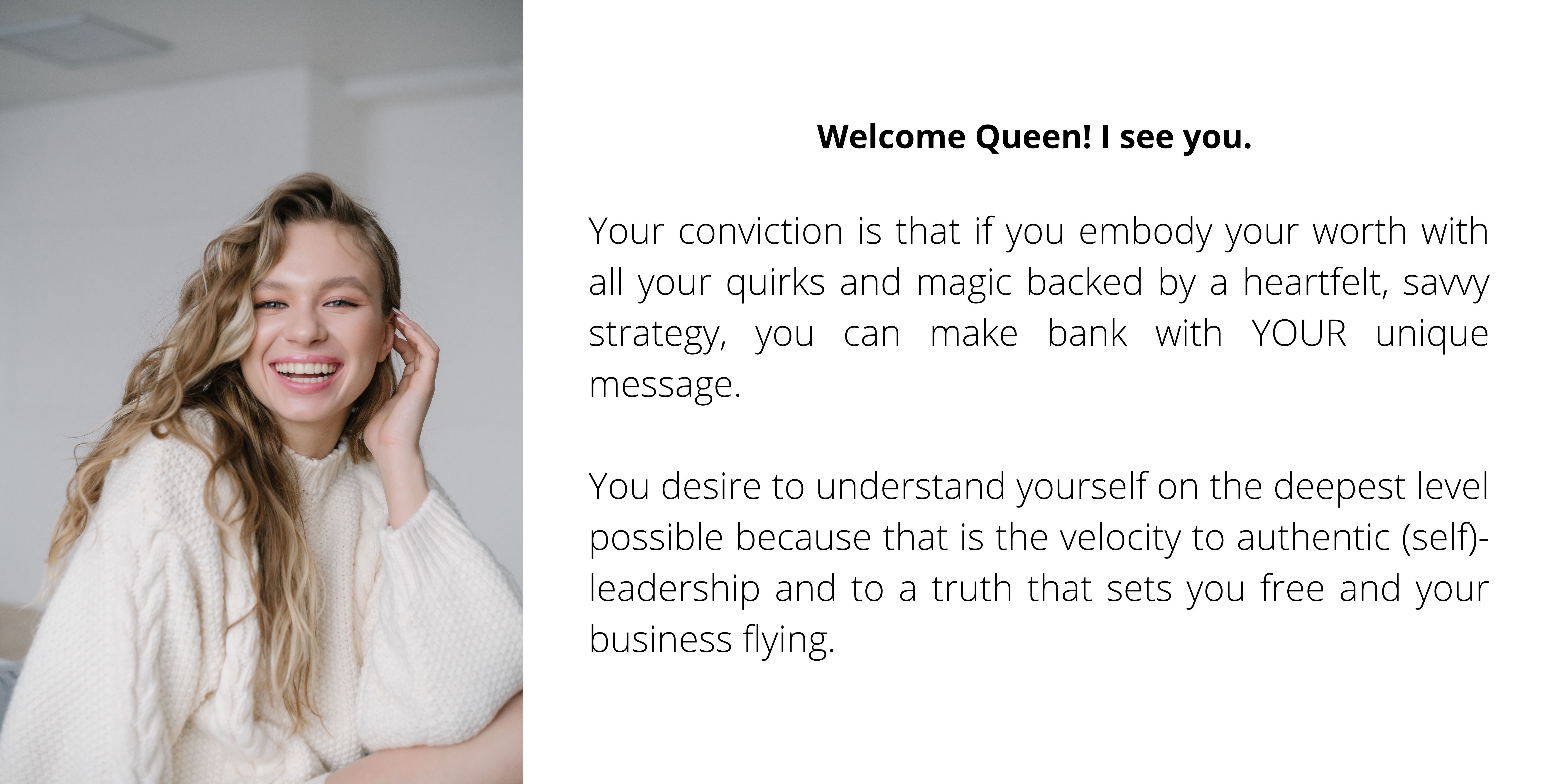 If you return to your natural feminine state of surrender, magnetism, & intuition you can embody your inherent worth so you can build the business of your dreams while blowing up your stripe account.